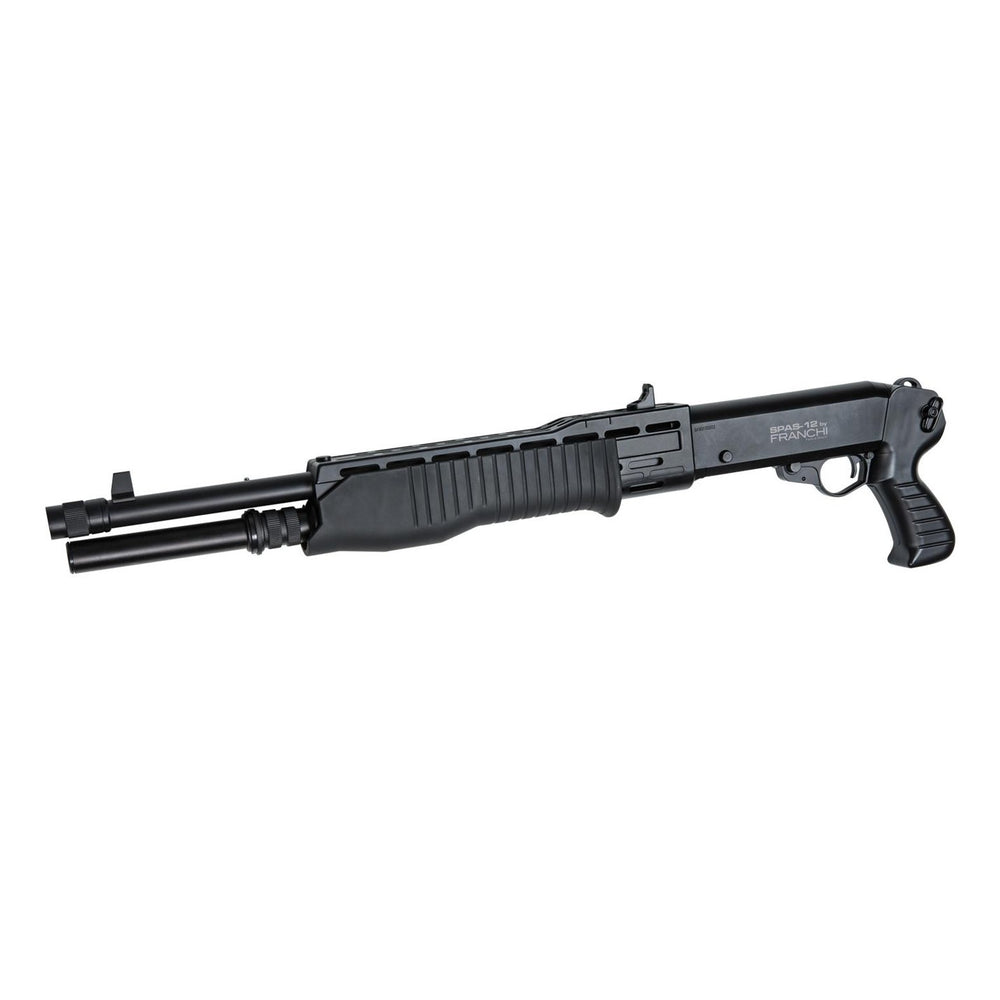 The SPAS-12 3-burst is fully licensed by Franchi, this Sportline shotgun uses the realistic looking shells and is made with a metal outer barrel. The full size SPAS-12 Shotgun is known to be the ultimate velociraptor repellent but is suited for close quarter combat as well.