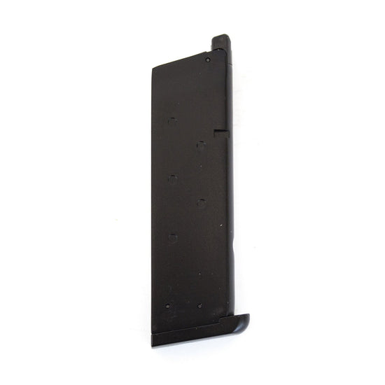 Standard 15rd single-stack magazine for WE 1911/MEU series. Standard 15rd magazine for WE MEU and 1911A1 single-stack loading pistols. Metal construction, black finish with a big bumper on the bottom of the magazine