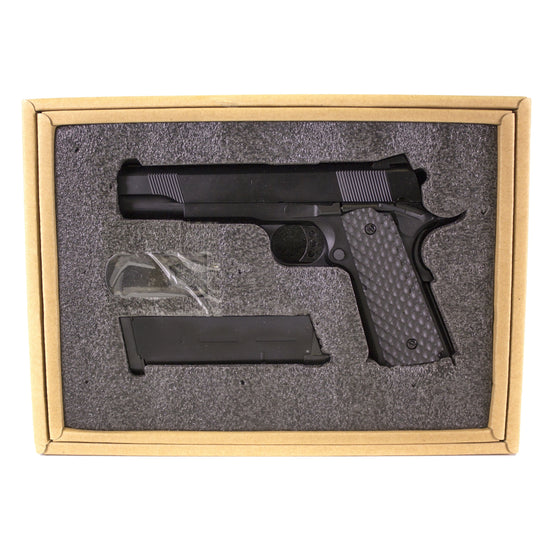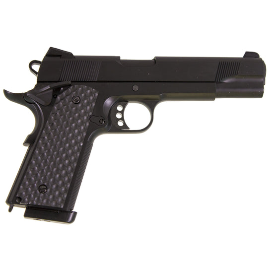 Manufactured to to a very high standard the MEU is modelled around the 1911 but an updated versionThis replica is truly beautiful the weight and feel are perfect there's no wobble or rattles from the slide and even the grips feel soild. This model of MEU/1911 features Semi Auto firing mode and golf ball style grips in black.- Full metal- Blowback- Grip safety- Field stripable