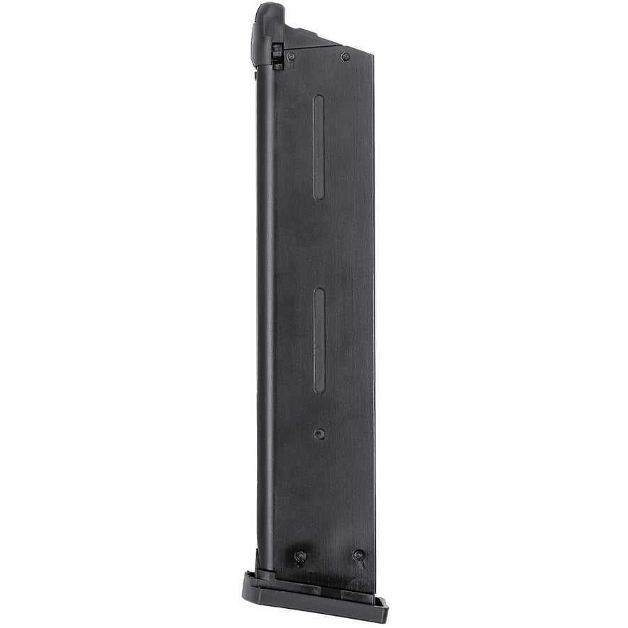 VORSK have a large range of GAS & CO2 magazines for their GBB pistols.The magazines body is a metal construction, with a polymer feed lip, follower and a protective base plate. MEU/VX-9 Series are available with standard Black, or Chrome baseplates to match or customise your sidearms colours.Fuel your VORSK GBB Pistol the way it was designed with VORSKs range of GBB Fuel V6, V8 & V12VORSKs MEU/VX-9 Series of Magazines includeVGM-03-02 MEU/VX9 Series 21R STD GAS Magazine - BlackVGM-03-01 MEU/VX9 Series 36R EXT GAS Magazine - BlackVGM-03-04 MEU/VX9 Series 21R STD CO2 Magazine - BlackVGM-03-03 MEU/VX9 Series 36R EXT CO2 Magazine - BlackVGM-03-06 MEU/VX9 Series 21R STD GAS Magazine - ChromeVGM-03-07 MEU/VX9 Series 36R EXT GAS Magazine - ChromeVGM-03-08 MEU/VX9 Series 21R STD CO2 Magazine - ChromeVGM-03-05 MEU/VX9 Series 36R EXT CO2 Magazine - ChromeNOTE: VORSK MAGAZINES SHOULD BE LOADED VIA A SPEEDLOADER TO AVOID DAMAGING THE FOLLOWER & FEED LIPNOTE: AFTER FIRST USE, WHEN STORING THE MAGAZINE A SMALL AMOUNT OF APPROVED AIRSOFT GAS SHOULD REMAIN IN THE GAS RESEVOIR TO TREAT & MAINTAIN O-RINGS.