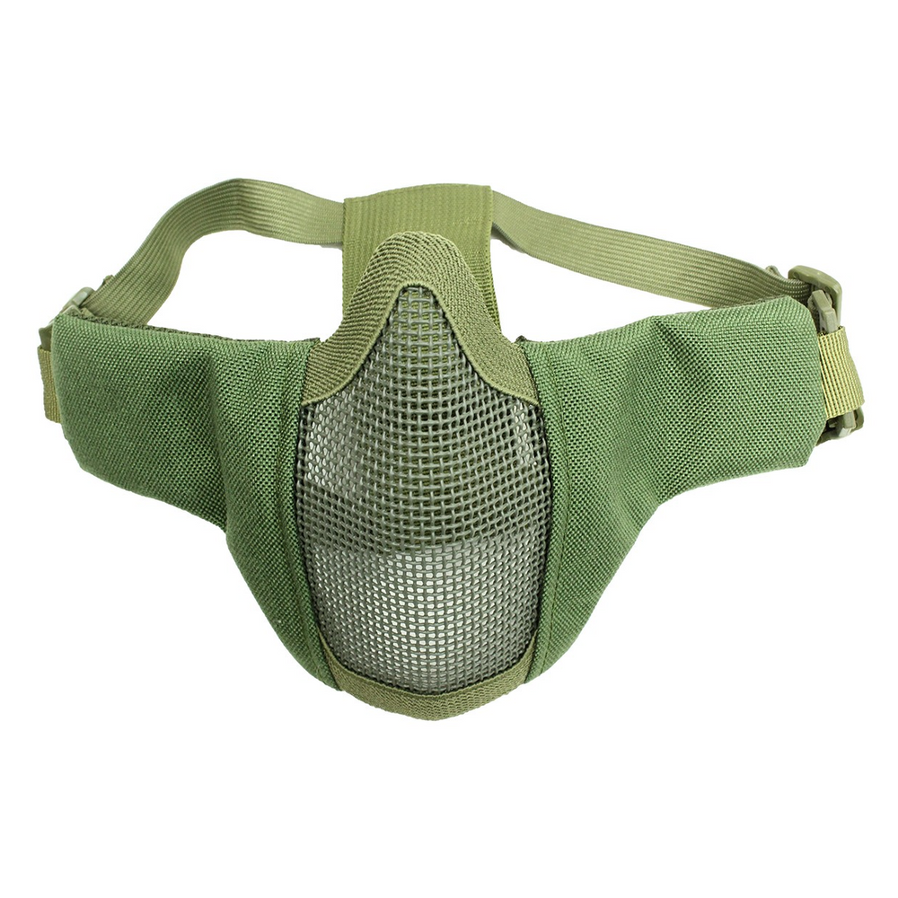 Superior comfort and protection. This combo nylon/metal grid mask covers the lower face, features fully adjustable upper, and lower elastic straps as well as rear retention webbing insert, which keeps the straps in place on the head. The soft padded nylon sides of the mask follows the contours of the face and allows easy shouldering of any rifle, so the mask does not get in the way of a clear sight picture. The metal mesh can be adjusted for a perfect fit. Must be used with safety goggles.