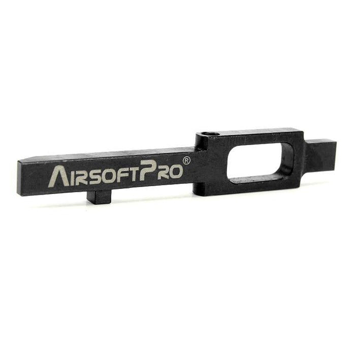AirsoftPro custom trigger sear is made of steel on CNC machines. Surface is hardened on HRC48-55. This brings maximum durability. Outer design fit in the trigger box without movement and no modification needed.