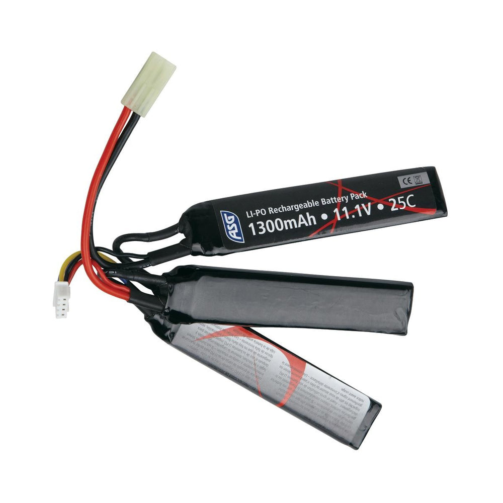 This compact 11.1V Li-Po battery with its slim split-cell construction, allows great flexibility in placing it inside a AEG, even inside SOPMOD/Cranestocks. Despite its small size it still packs 1300mAh. It comes in a handy storage box.