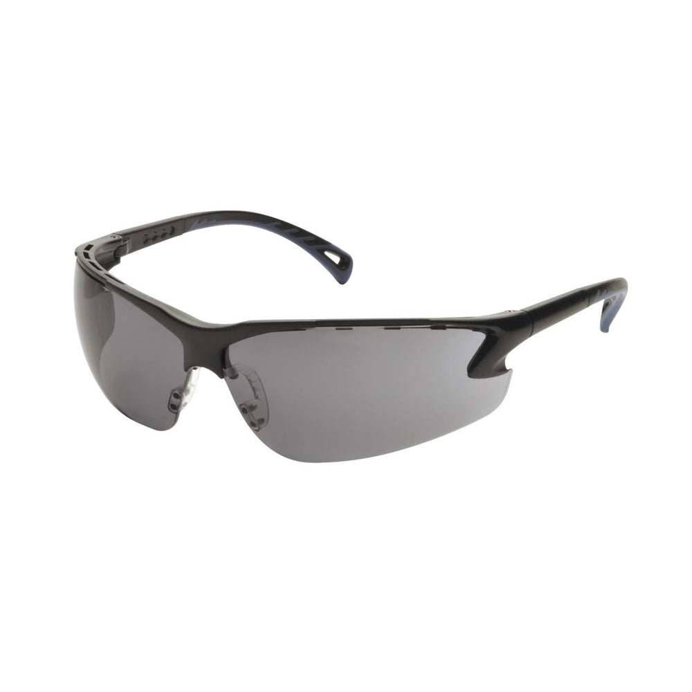 A stylish adjustable ergonomic design, with ventilation in frame and nose bridge, that provides comfortable protection with full peripheral vision. Dark lens for bright environments. They are CE certified, your guarantee for safe reliable protection.Features:Stylish, ergonomic frame combines with sleek polycarbonate lenses for the ultimate in protection and style.Newly designed ventilated nose piece is soft and adjustable, allowing heat to dissipate from nose bridge and reduce fogging.Perfectly balanced from temple tips to the bridge of the nose, providing the best fit possible.High quality optics offer extreme clarity and no distortion.Soft dual-injected rubber temple tips combined with fully adjustable straight back temples reinforce the highest level of comfort and fit.Top of frame is ventilated allowing air to circulate and prevent fogging.9.75 base curved lens provides excellent side protection against wind and airborne particles.Offers protection from excessive glare.Provides 99% protection from harmful UV-A and UV-B rays.Exceeds ANSI Z87.1-2003 High Impact Requirements.CAN/CSA Z94.3-07.CE EN166 Certified.