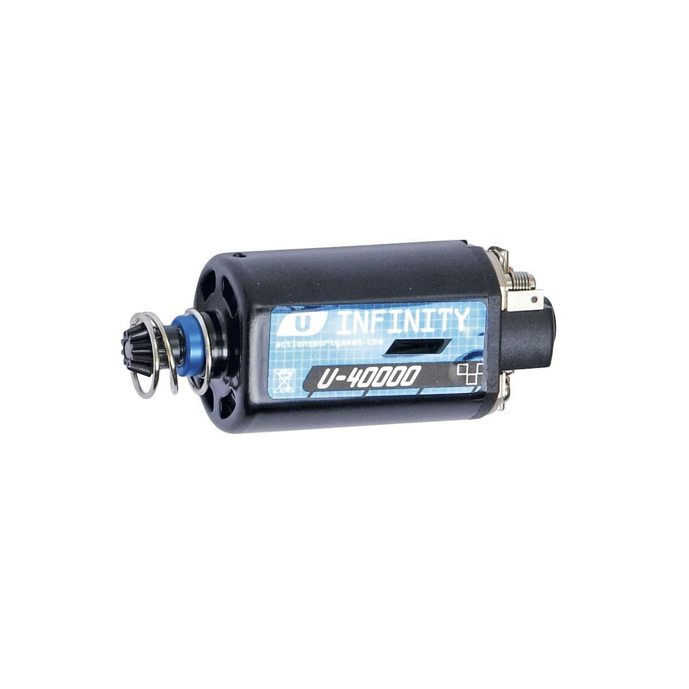 Suited for between M100 and M110 springs, with appropriate gears.The new high-performance motors in the Ultimate Upgrade Series all have hand-coiled and equalised rotors that ensures optimal performance. The motors build on the latest patented technology, requiring less maintenance, longer life span and not least higher performance – abilities vital to the professional gamer and the conscientious Airsoft enthusiast.Features:Anti oil-absorbing functionMotor stabilizerSuperior Heat emissionPolymer back coverUnsurpassed DurabilityInternal ball bearing support.Super Magnets for repeated and perfect performance.Oversize carbon brushes for long life performance.Steel pinion gear hardened to 50-55 HRC Multiple stress tests shows that INFINITY high performance motors ranks second to none.