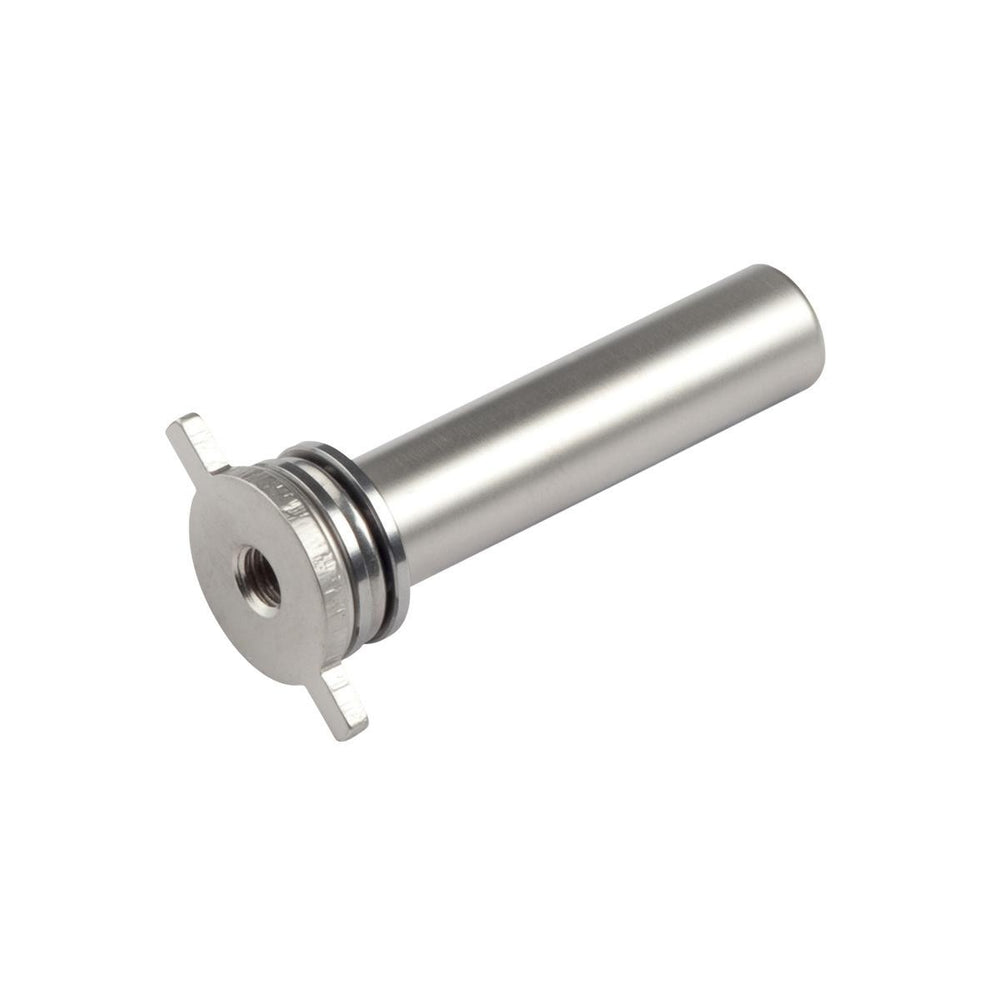 Spring guide for version 6/7 gearbox.Ultimate spring guides has steel bearings and rotatable guide. This minimizes friction when the spring is compressed, primarily effecting the rate of fire.