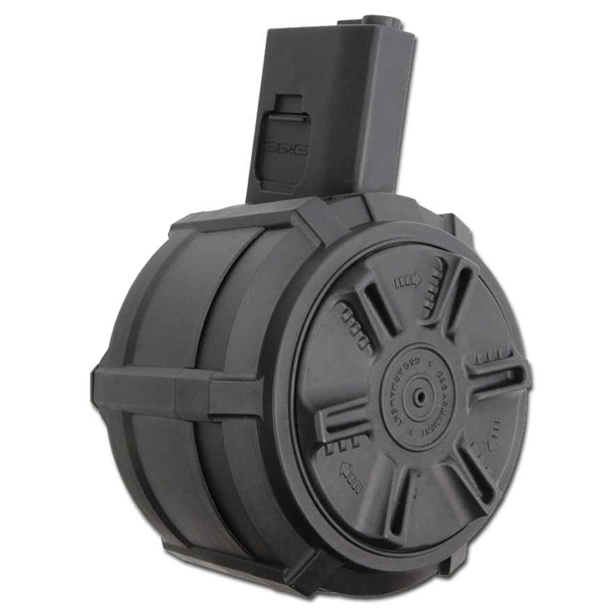 Features:Compatibility: M4/M16 Style RiflesColor: BlackCapacity: 2,300rd.Manual WindingDurable Polymer ConstructionHigh Tension SpringEnlarged Opening for Easy LoadingLightweight DesignErgonomic Finger GroovesUniversal Design
