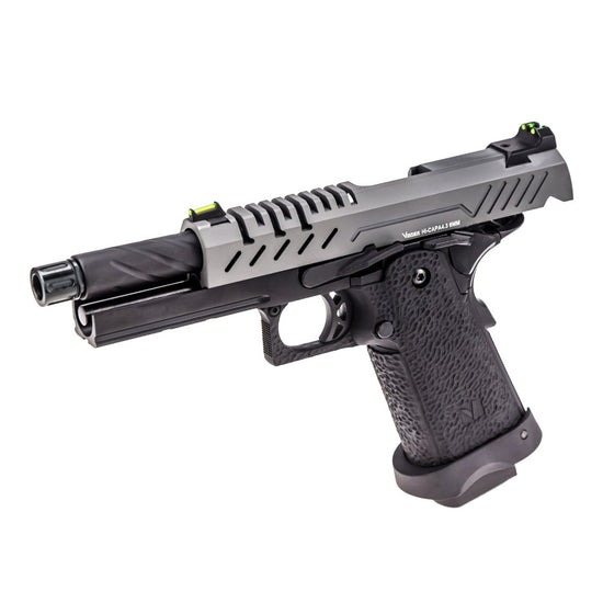 BrandVORSKLength(mm)220Weight (g)880Fire ModesSemi-AutoBarrel Length (mm)93.7Barrel Bore (mm)6.03RailsYesApprox. FPS295Main MaterialsHIPS Material & AluminiumIncludedReplica, Magazine & ManualCompatible MagazinesVGM-02-01Compatible Batteries / GasNuprol 2.0 / Nuprol 3.0Other Info/SpecsCNC Finished SlideVorsk Hi Capa Series and all other models from Vorsk are inspired by the finest and most advanced modern combat and competition handgun designs, VORSK translates these unique and innovative concepts to the Airsoft market in the form of a totally new range of GBB pistols.VORSKs objective from initial concept to the market has been to provide robust, dependable GBB Pistols whilst also adding a touch of style & flair to your sidearm.In order to achieve this, VORSK have taken time and care to discuss and develop these concepts with leading Airsoft players and established, successful Airsoft manufacturers. These concepts then moved into extensive development, with new moulds and production techniques ensuring a first class product range.The final results are a range of GBB pistols that are as effective on the field as they eye-catching on display.Effective, Elegant, Mission Ready