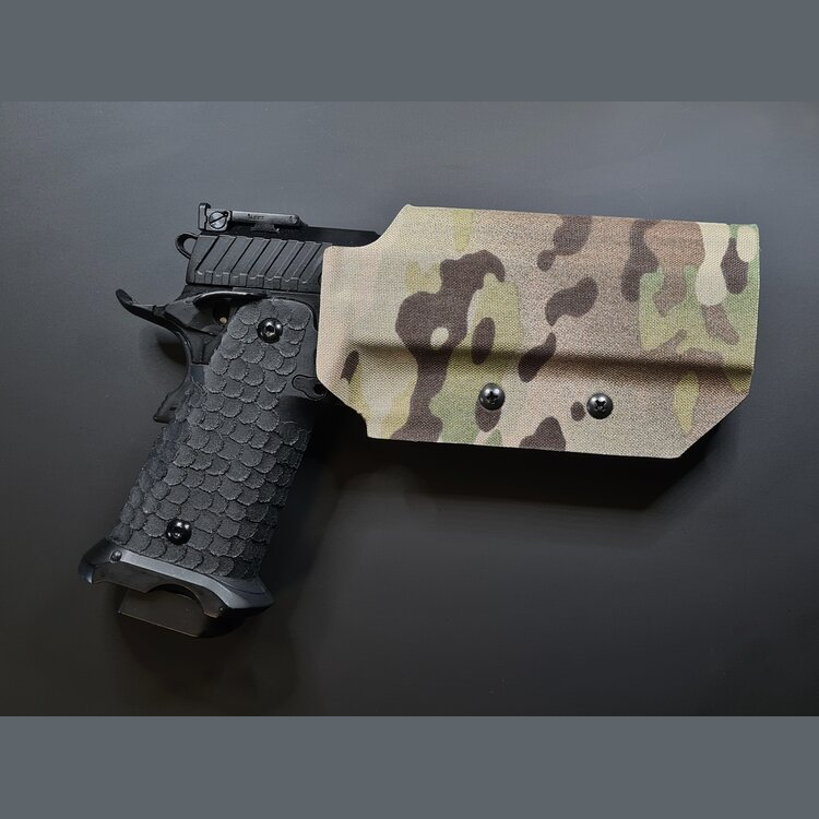 The Kydex Custom Pro Series Hicapa Holsters are designed to work with all standard makes and models of Airsoft Hicapa on the market. These holsters are made entirely in the UK from genuine 2mm (.08”) P1 Kydex, if applicable they are also wrapped in either 1000D or 500D Cordura Fabric. Every Pro Series Holster is made with a mould which was entirely designed and manufactured by us making them the best holster possible that we can bring to the market.