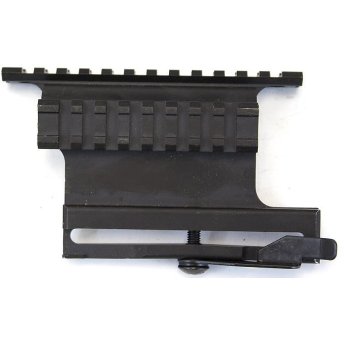 Up and over scope mount for AK style AEG's and GBB's which already have the side mount rail on them. Adjustable lever clamps the mount on to the rail.