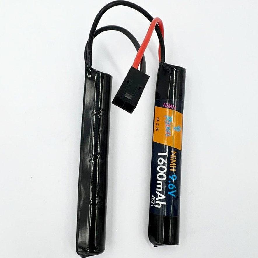 Type: Nickel-Metal HydrideVoltage: 9.6vCapacity: 1600 mAhConnector: Mini TamiyaConfiguration:NunchuckDimensions:120mm x 20mm (per stick)High Quality Silicone Leads