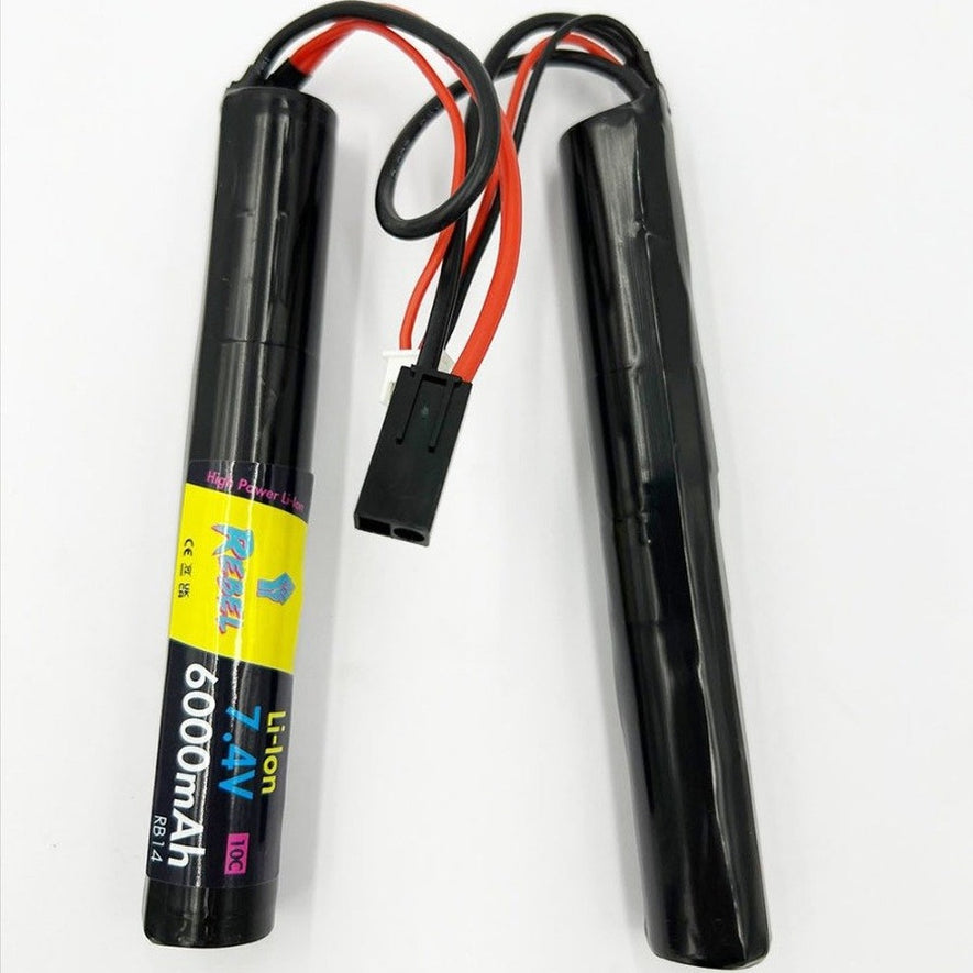 Type: Lithium-IonVoltage: 7.4vCapacity: 6000 mAhConnector:Mini TamiyaContinuous Rate: 10 C at 24 ABurst Rate: 20 C at 48 AConfiguration:NunchuckDimensions: 22 x 135mm (per stick)JST-XH Balance LeadsHigh Quality Silicone Leads