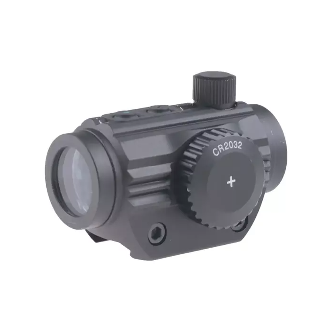 Theta Optics™ Compact reflex sight enclosed in a durable metal casing is powered by a CR2032 battery and allows for the use of either a green or red dot for operating during the day as well as night. The dot can be smoothly adjusted both vertically and horizontally, it also features several brightness settings. Mounted on a standard RIS 22 mm rail, the sight allows to rapidly and accurately aim. Red and green buttons are responsible for turning the sight on and adjusting the reticle intensity, respectively. The sight is turned off by pressing both buttons.