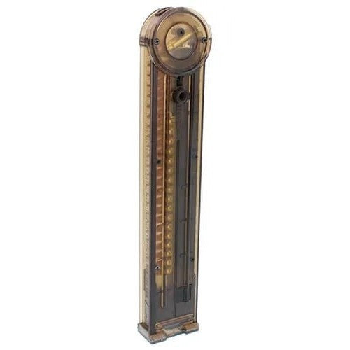 This P-90 Low-Cap magazine by Tokyo Marui has a capacity of 68 BBs and is made of a semi-transparent polymer. The inside of the magazine features decorative cartridges to give the magazine a realistic appearance.
