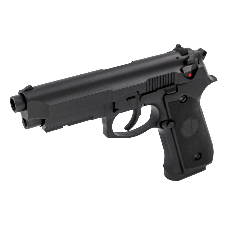 The OSIRIS is a Select Fire, GBB Pistol brought to you by the team at VORSK Airsoft.The OSIRIS is built upon the famous M9 platform but with a few key design changes. Inspired by a real-steel concept of this trusty sidearm, the OSIRIS is a full-auto replica with a reinforced slide and fitted with a picatinny accessory rail.The most notable of these changes is the reinforced, solid slide which toughens the OSIRIS for those high-stress moments when unloading a full magazine on automatic fire downrange. Gone is the 180 ejection port and open-slide design, replaced by a thick, solid slide featuring strengthening lugs halfway down above the disassembly pin giving the OSIRIS a unique look in the Airsoft world.The ambidextrous select fire controls have been designed specifically for the OSIRIS allowing the user to quickly change between semi and full-auto. The rear features a standard, low-profile hammer, a VORSK branded polymer grip and a protective polymer magazine baseplate. Moving forward, the large trigger guard provides plenty of room for gloved fingers and there is a single-slot picatinny rail on the under barrel for lights/ lasers to be fitted. A threaded inner and outer barrel allow for the attachment of barrel accessories plus there is a 12 / 14 mm CW / CCW thread adaptor included to further increase the number of compatible accessories.The OSIRIS is available in 4 colour options a full Black (slide & receiver), full Silver, full Brushed Aluminium and full Dark Earth.Length(mm)215Weight (g)854Fire ModesSafe / Semi / Full-AutoBarrel Length (mm)113Barrel Bore (mm)6.03RailsPicatinny Accessory RailApprox. FPS300 - 328Main MaterialsMetal AlloyCompatible MagazinesVGM-05-01 - VORSK OSIRIS Gas MagazineCompatible Batteries / GasVCP-GAS-V6 - VORSK V6 GBB FuelVCP-GAS-V8 - VORSK V8 GBB FuelVCP-GAS-V12 - VORSK V12 GBB Fuel