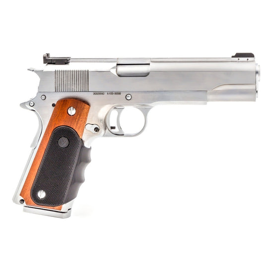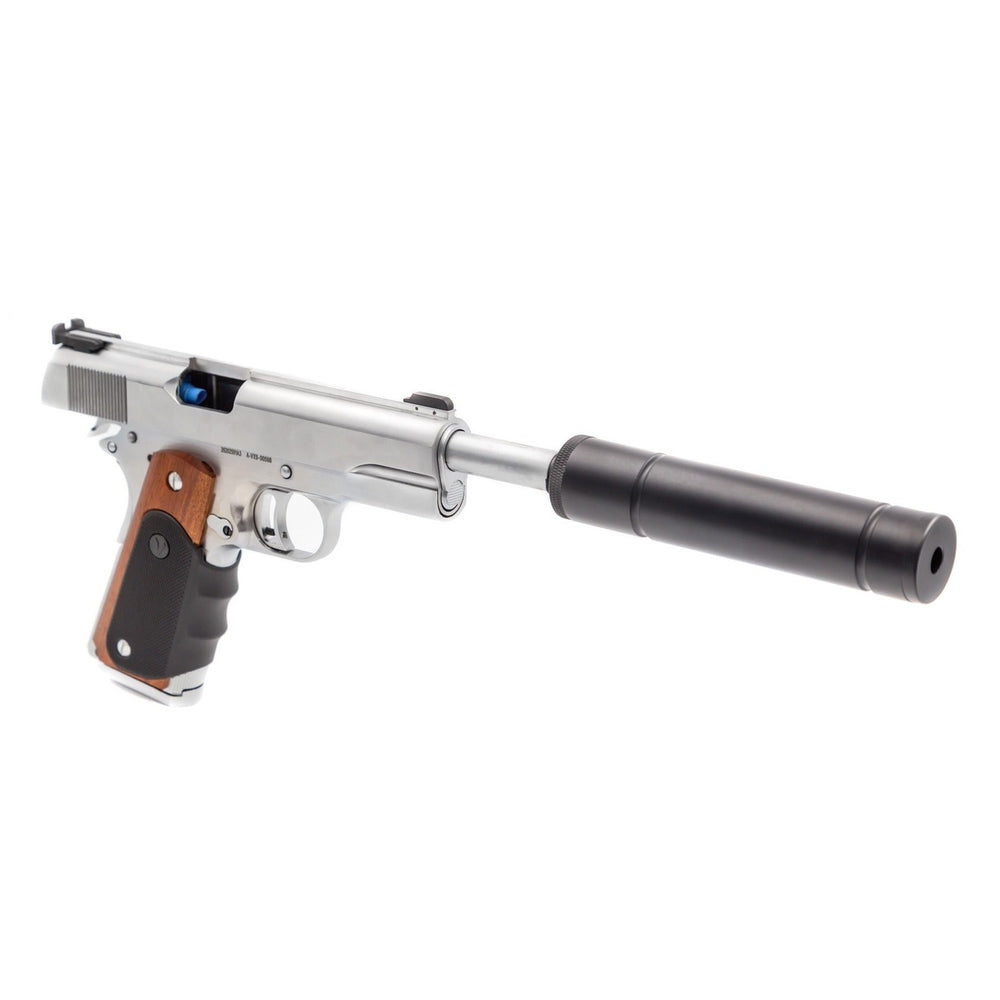 The VX9 features a clean slide with an integrated signature ridge that runs the full length of the top of the slide and integrates the front and rear sights in this distinctive manner. The ridge is integrated into the mould and is one piece and not attached to the slide. We also have custom wood and rubber grips with inlayed rubber texturized sections that wrap around the lower frame/grip.The VX9 also features threaded inner and outer barrels for barrel extension and the included Agency Silencer. Available in silver or black, and as a single model, the VX9 is also available as a matched pair in a special box featuring the two pistols, two magazines, and two extended magazines.The Vorsk Agency VX Series and all other models from Vorsk are inspired by the finest and most advanced modern combat and competition handgun designs, VORSK translates these unique and innovative concepts to the Airsoft market in the form of a totally new range of GBB pistols.VORSKs objective from initial concept to the market has been to provide robust, dependable GBB Pistols whilst also adding a touch of style & flair to your sidearm.In order to achieve this, VORSK have taken time and care to discuss and develop these concepts with leading Airsoft players and established, successful Airsoft manufacturers. These concepts then moved into extensive development, with new moulds and production techniques ensuring a first class product range.The results are a range of GBB pistols that are as effective on the field as they eye-catching on display.